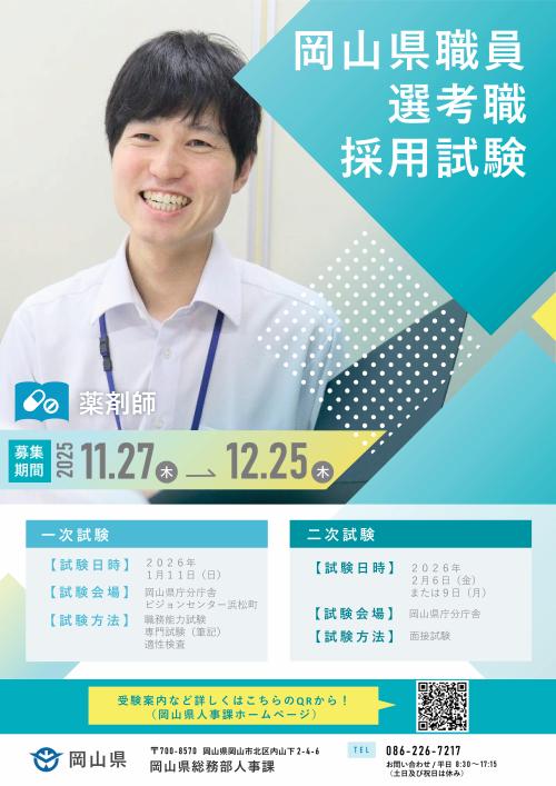岡山県職員選考職(薬剤師)採用試験を実施します!