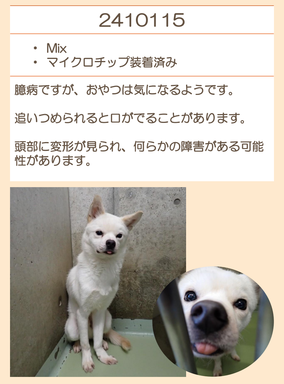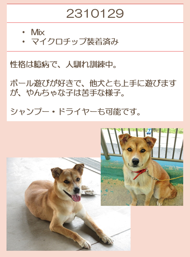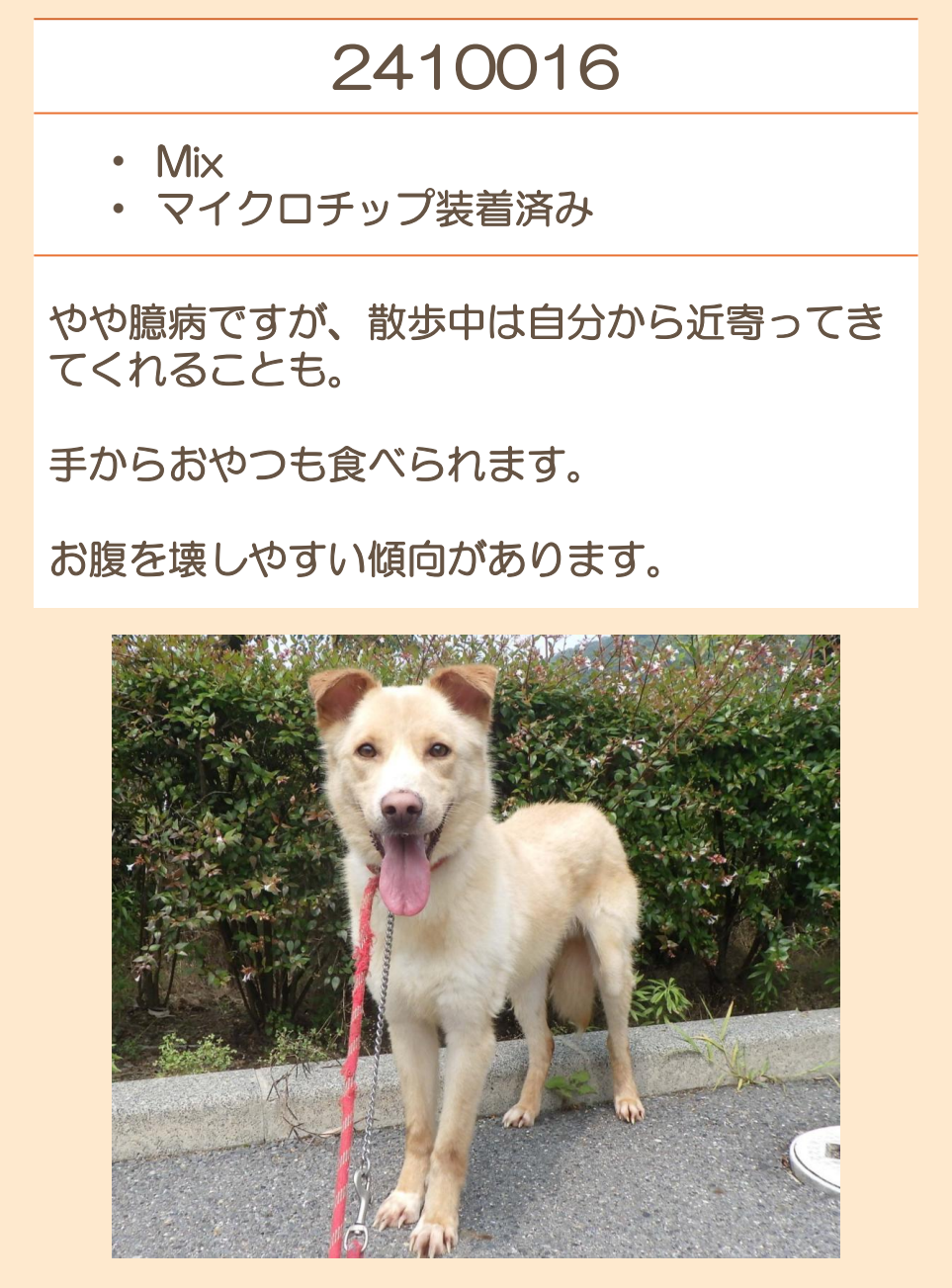 推定2020年生 避妊メス 中型(10キロ程度) |