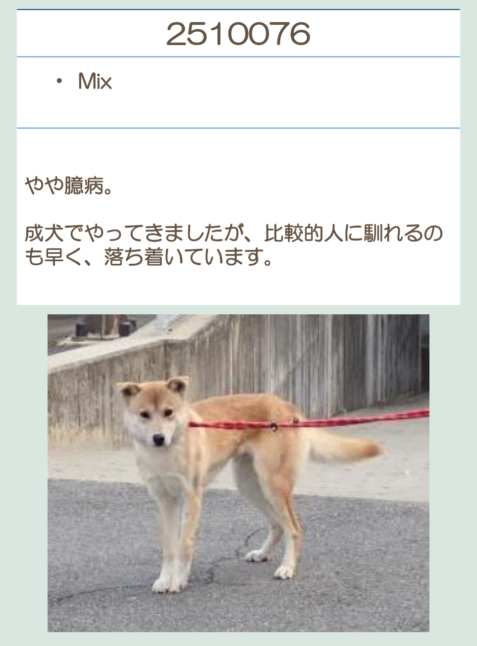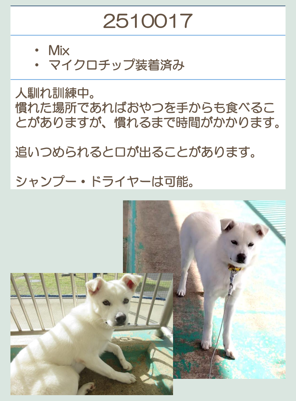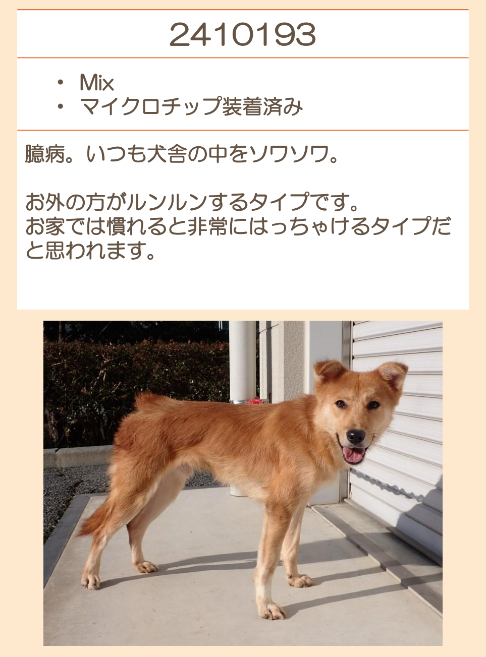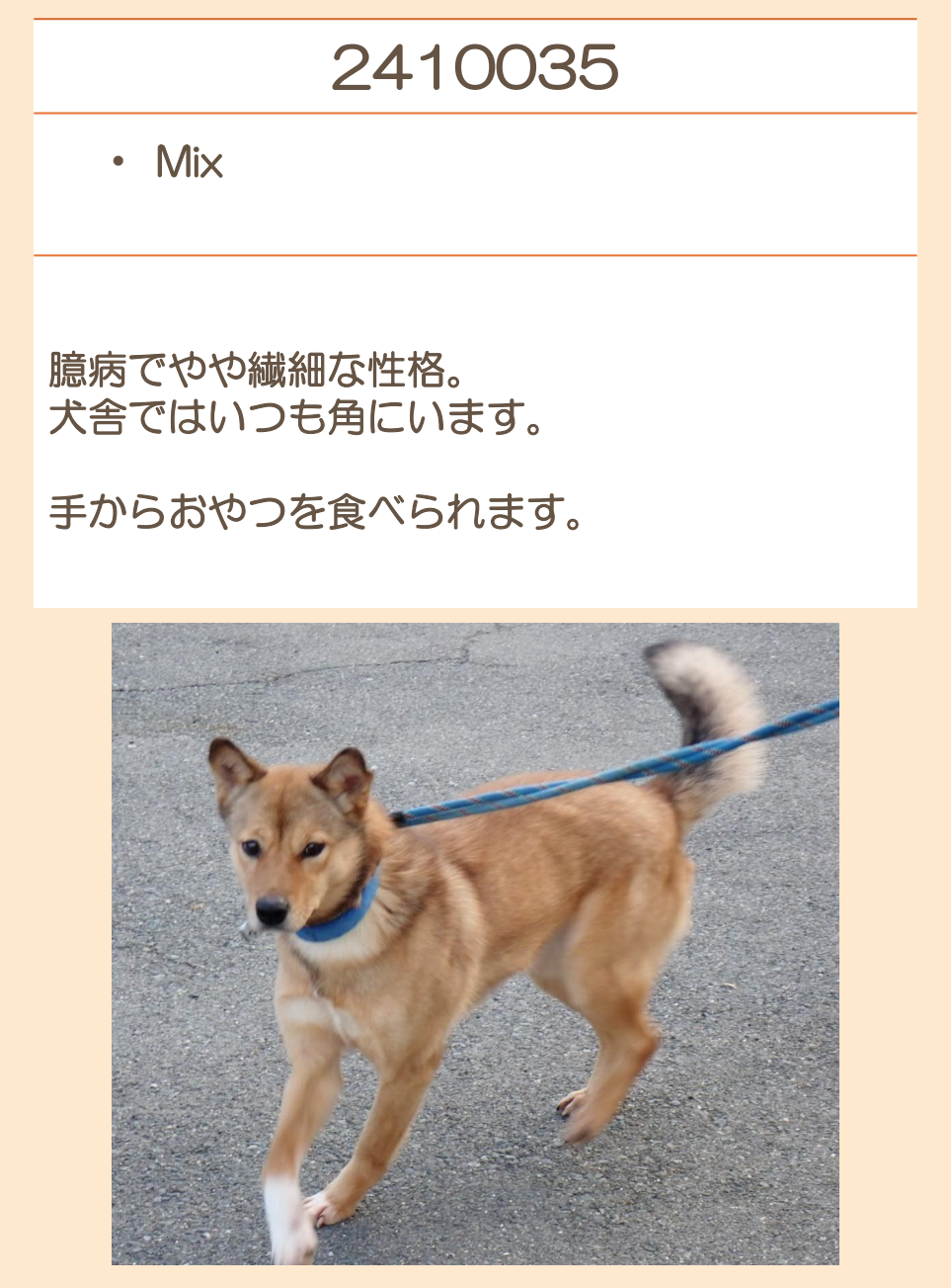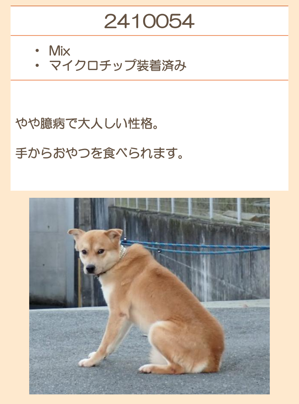 推定2020年生 去勢オス 中型(15~20キロ) |