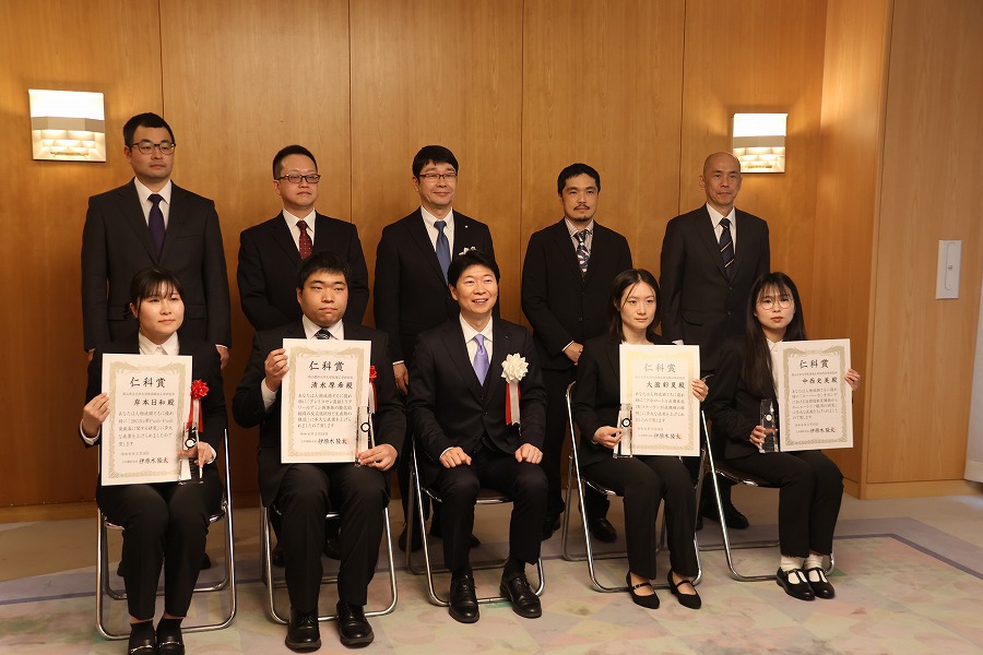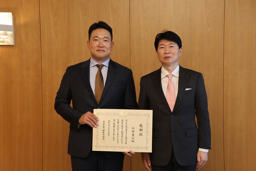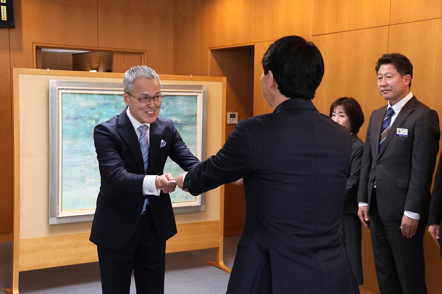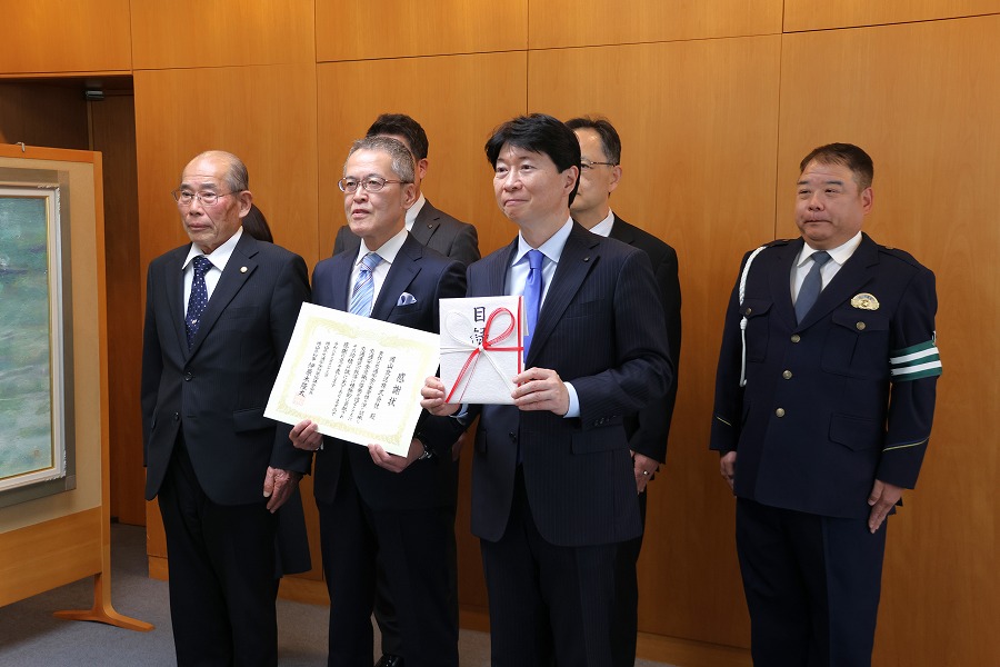 | 「黄色いワッペン」贈呈式〔みずほ銀行、損保ジャパン、明治安田生命、第一生命〕 (15時20分 知事室) |