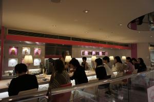 老舗果物専門店で、白桃やブドウの旬の時期に岡山県フェアを実施しました。 生産者を招いてのセミナーの開催や県産果物を使った期間限定パフェ等の販売も行いました。 |