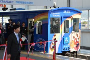 瀬戸大橋開業25周年記念列車乗車 (12時15分 記念列車(アンパンマントロッコ列車)内) | 瀬戸大橋開業25周年記念列車出発式 (11時40分 JR児島駅) | 同左 |
