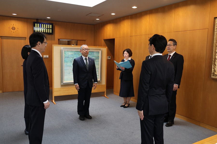 | 新規採用職員への辞令交付・訓示 (10時15分 9階大会議室) |