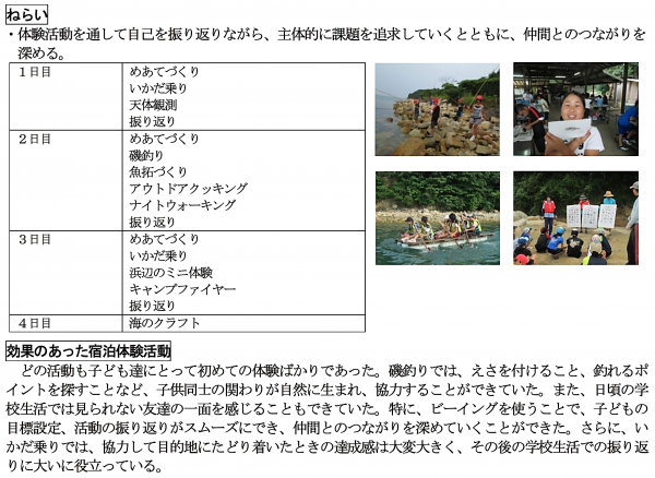 小学校長期宿泊体験活動推進プロジェクト(モデルプログラム)
