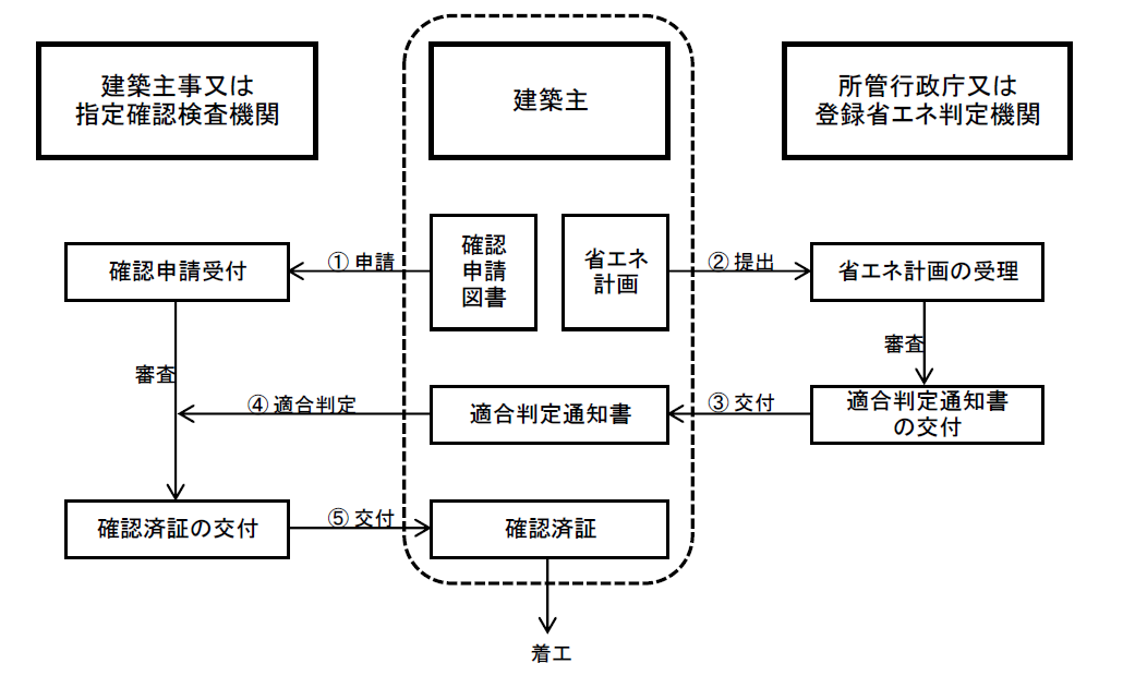 ※建築確認と省エネ基準適合性判定を同一機関に申請することも可能です。