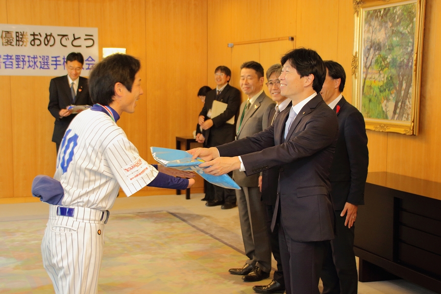 | 全日本身体障害者野球選手権大会優勝チーム「岡山桃太郎」表敬訪問 (13時00分 特別応接室) |
