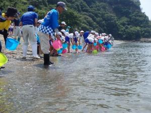 笠岡地区では、アマモ場再生活動のほか、稚魚放流や海ごみ回収を実施。