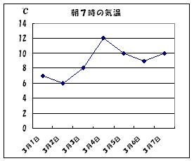 また線の傾(かたむ)きが急だと、気温が大きく変化したということがわかります。
