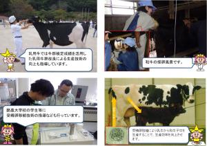 子牛生産農場への育成技術の指導や受胎率向上のための繁殖・交配指導、人工授精師に対する技術指導や受精卵の移植の実施など、家畜改良増殖の推進をしています。また、特に岡山県が生産の振興に努めている和牛の「おかやま四ツ☆子牛*」等の生産指導、乳用牛では牛群検定成績を活用した生産技術の向上にも取り組んでいます。