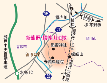 ・JR瀬戸大橋線児島駅から小川天城経由倉敷駅行きバス30分曽原口下車徒歩5分