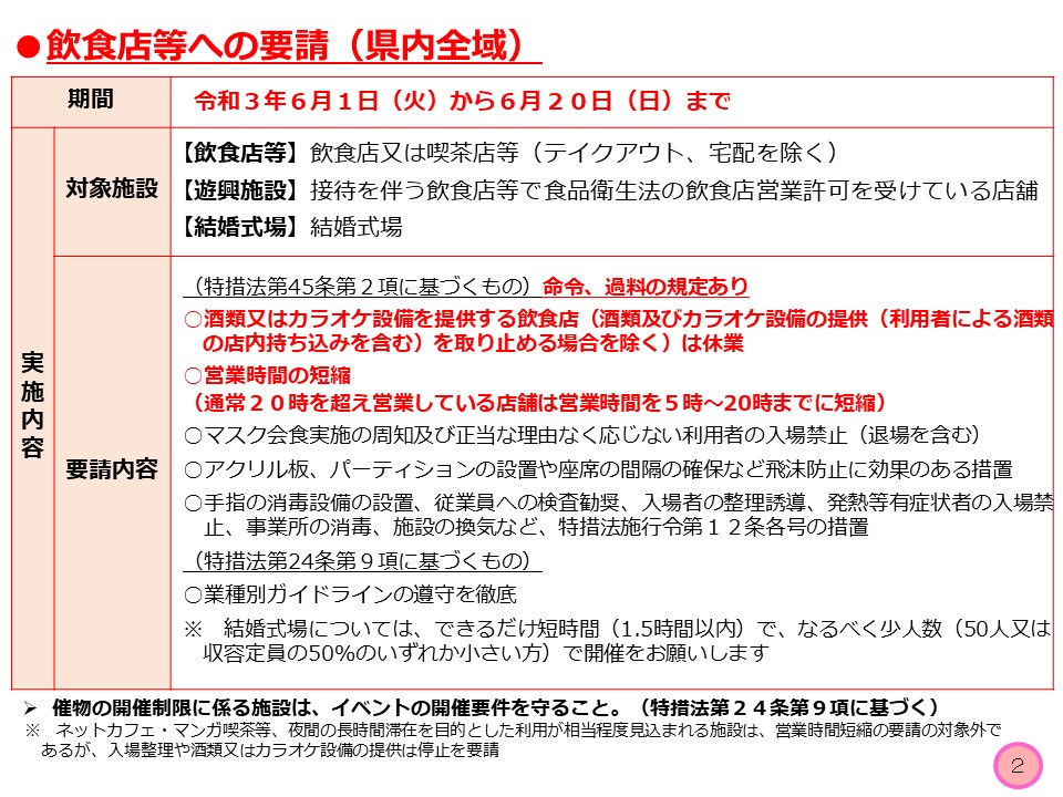岡山県緊急事態措置(令和3年6月1日から6月20日まで)