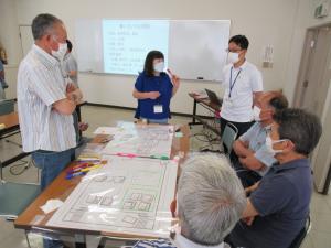 NPO法人まちづくり推進機構岡山の指導の下、避難所運営ゲーム(HUG)を体験し、避難所運営で必要なモノやコトを知り、今後の防災活動に活かせるよう、自主防災会役員の意識を高めました。