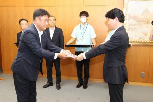 | 採用辞令交付〔上坊副知事〕 (9時00分 知事室) |