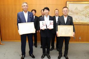 | 全国植樹祭協賛金贈呈式〔県建設業協会・県森林土木建設協会〕 (15時00分 知事室) |