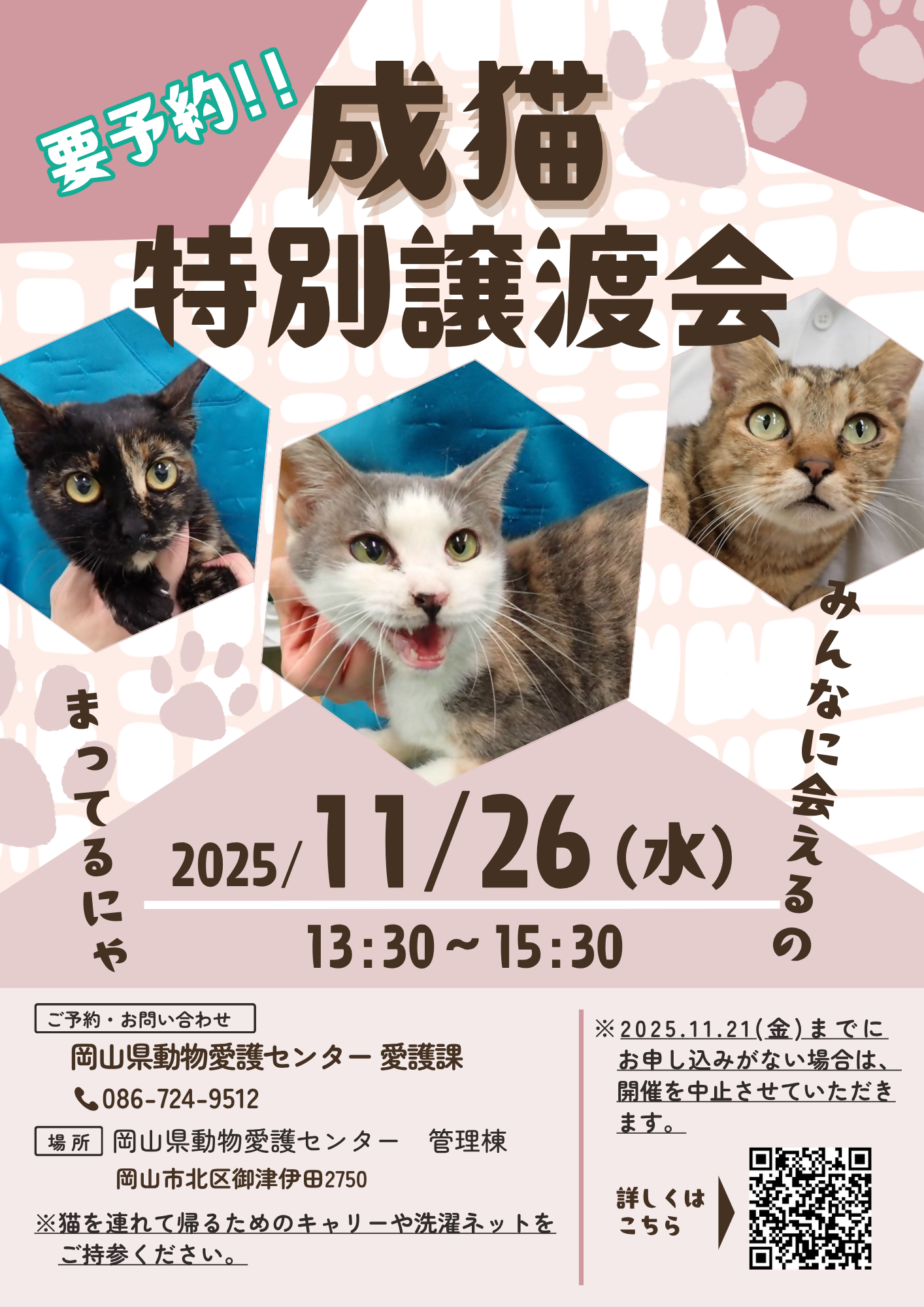※今回は、成猫のみが対象となります。子猫は対象ではありません※