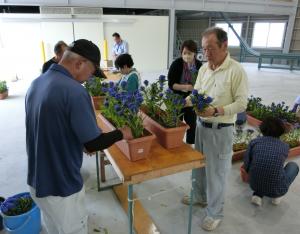 5月24日に、今月竣工したりんどう選花場へ部会役員が集まり、加温促成栽培したりんどうを使ったアレンジを20個作成し、植樹祭前日に会場へ搬入しました。