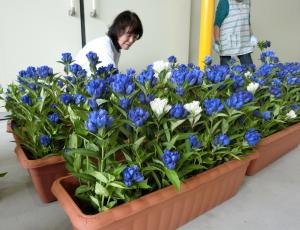 全国植樹祭装飾用のりんどうのアレンジを作成しました(新見市)