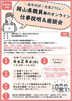 「岡山県職員(技術職等)のWeb仕事説明会・座談会」を開催します!(人事委員会事務局ホームページ)