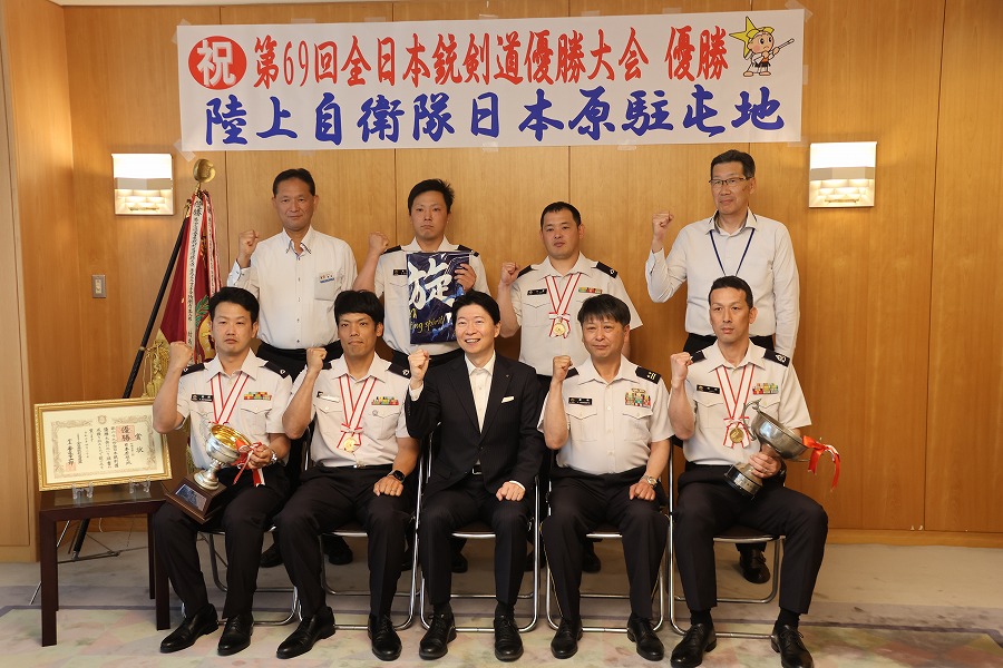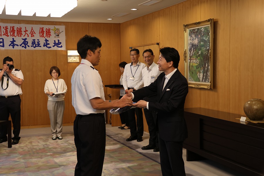 | 全日本柔剣道優勝大会優勝 日本原駐屯地チーム表敬訪問 (11時40分 特別応接室) |