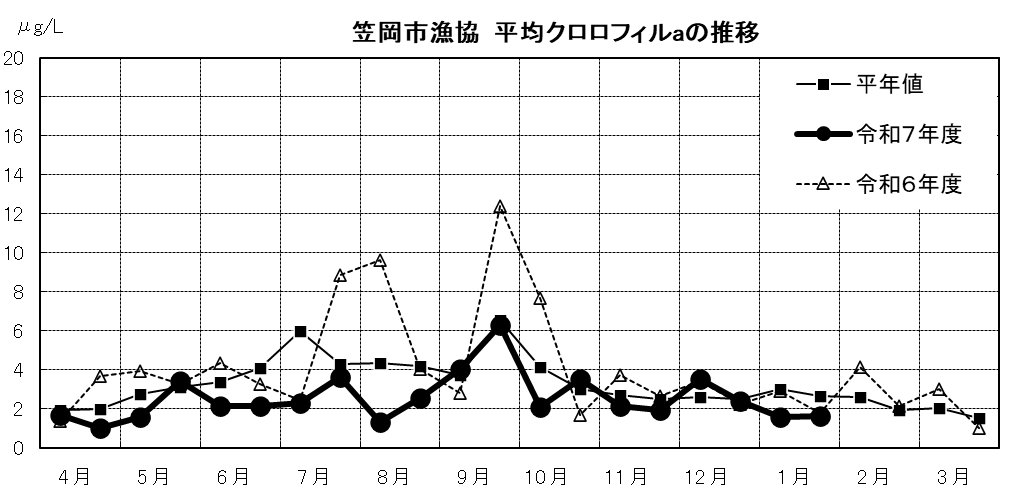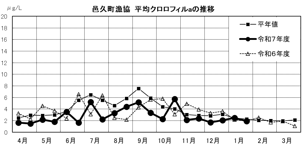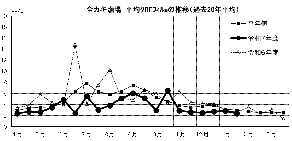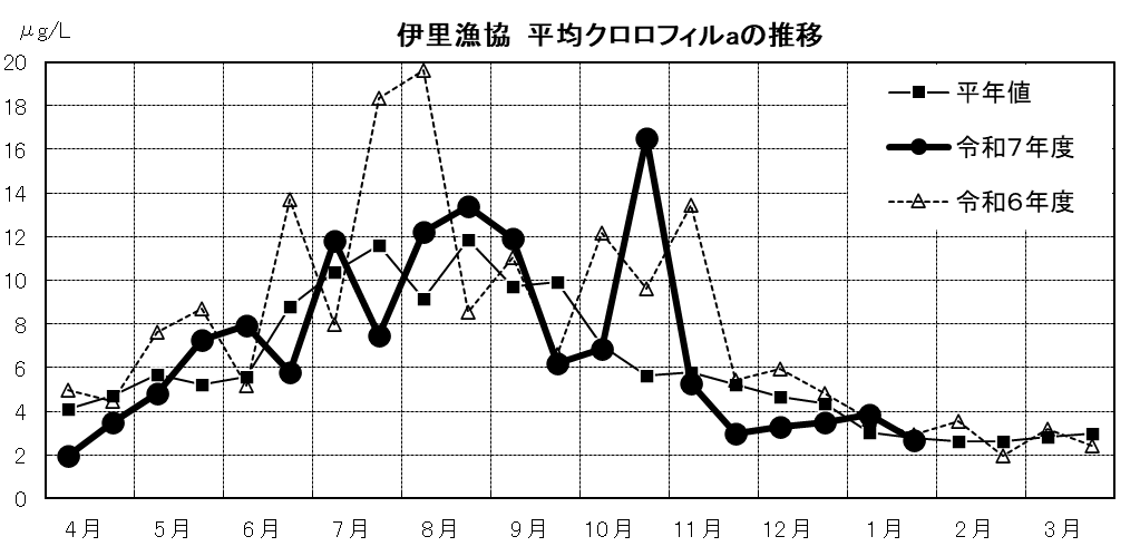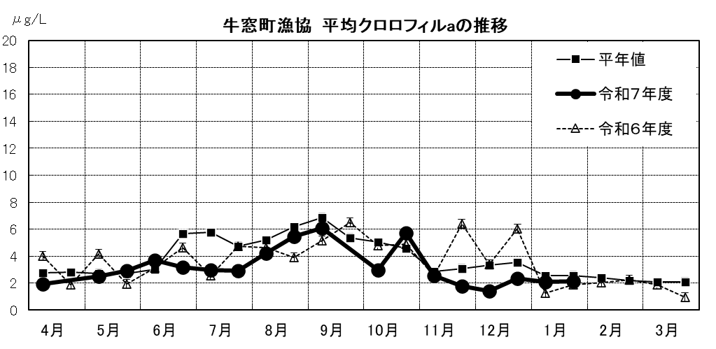 2025年度(令和7年度)のクロロフィルaの推移 (全県、地区ごとのグラフ)