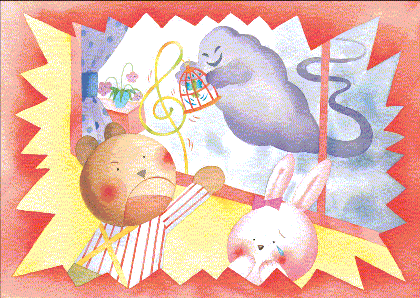 うさぎのぴょん子ちゃんはくまのごんたくんのお家に遊びに行きました。