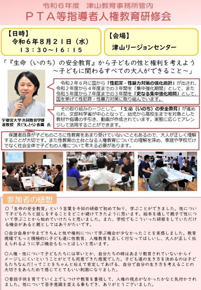 P T A等指導者研修会、P T A等指導者人権教育研修会