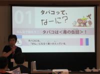 課外学習(情報採集)や発表会等を通じて、たばこの害について学んだ子どもたちが、たばこの害についての啓発や感想等を話します。