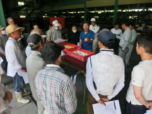 【はなよめの出荷規格を確認する生産者】