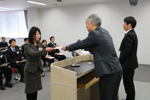 研修では国際バカロレアの趣旨を踏まえた人材育成や働き方改革による教育の質の向上など岡山県が直面する教育課題の解決に向けた施策について、異校種のチームで立案、提言するプロジェクト研究について発表しました。発表後には鍵本教育長が受講者一人一人に研修の修了証書を手渡し、「漫然と仕事に取り組まず、目的を明確にして取り組むよう意識してほしい。また、校種を越えた今回の研修での仲間たちのつながりを大切にしてほしい」とメッセージを贈りました。