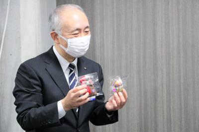 ▲岡山東支援学校の生徒が作った「さをり織りの匂い袋」