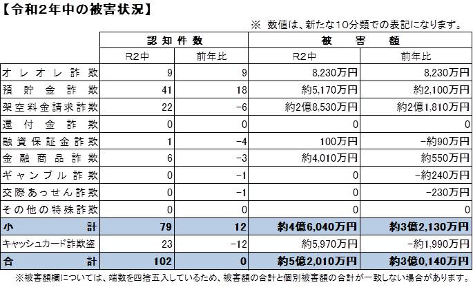 岡山県内の過去の特殊詐欺発生状況(令和2年中) [その他のファイル/67KB]