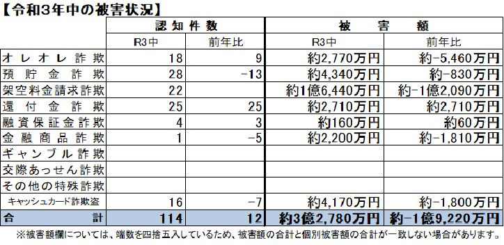 岡山県内の過去の特殊詐欺発生状況(令和3年中) [その他のファイル/53KB]