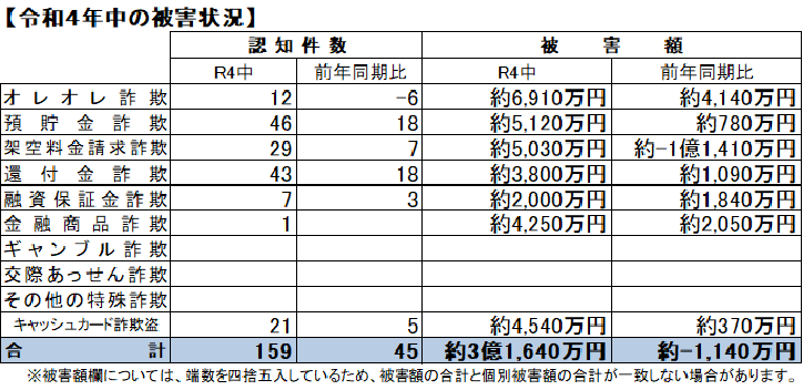 岡山県内の過去の特殊詐欺発生状況(令和4年中) [その他のファイル/52KB]