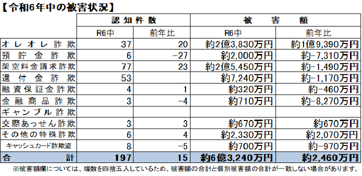 岡山県内の過去の特殊詐欺発生状況(令和6年中) [その他のファイル/58KB]