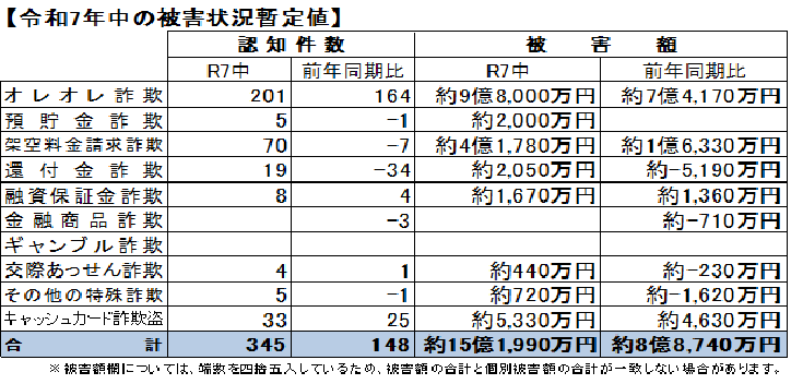 岡山県内の過去の特殊詐欺発生状況(令和7年中) [その他のファイル/44KB]