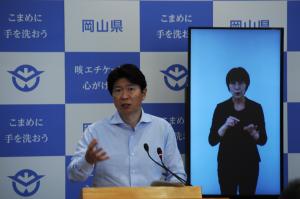 今回それぞれ県単独事業を作ったわけでありますけれども、本当にこれまで県民の皆さんがよく頑張っていただいた、ご協力をしていただいたおかげで、第1波、それから今の状態、第2波と呼ぶのかどうなのか、何とか岡山県、大阪・兵庫に近接している地理的条件の中では、何とか闘えると思っております。あらためて感謝申し上げたいと思っております。また、ずっと医療機関の皆さんがよく頑張ってくださっています。今でも入院患者がいらっしゃるわけで、日々医療関係者の皆さん対応してくださっているわけでございます。あと、クラスターを3つ作ってしまいましたけれども、院内感染、それから高齢者施設、福祉施設でのクラスターはまだ作っていない。これもこの先分かりませんけれども、その陰には感染対策を日々頑張ってくださっている方々がいらっしゃるわけでございます。本当に、特にここ数週間は大変暑い中、取り組んでいただいていることに感謝をしたいと思っています。週末にGoToキャンペーンについて率直に私の考えを言ったつもりなんですけれども、ちょっと国に対して厳しすぎる感じのまとめになっていて、私自身も読んでいてちょっと残念だったんです。これまで国が本当に積極的に、岡山県をはじめそれぞれの都道府県または市町村を、特に財政面で支援していることに対して大変ありがたく感じております。岡山県だけで勝手にやったらどうというふうに突き放されたら、とても我々十分な対応ができなかったところでありまして、本当にありがたく思っております。私とすれば第1波を何とかしのいだ後は、希望的観測とすれば第2波は秋冬で闘うことになるのか、当然それより前に来る可能性もあるので備えてはいましたけれども、その悪い想定が出てしまった。秋冬に大きな山が来る確率、来ない確率ということで、私はかなり高い確率でまた秋冬に来るんじゃないかと思っています。そのときに、いかに感染者数を抑えるのか、これまで岡山県は重症者をほとんど出さず、また死者ゼロで来ていますけれども、秋冬の大きな波が来てもおかしくない状況の中で、まだその時までにはワクチンは間に合わない、特効薬も多分間に合わない、そういう中でどういうふうに重症者、死者を抑えていくのか、まだまだ我々これからも取り組んでいかなければいけないと考えています。一部若い方を中心に、コロナは大丈夫なんだ、確率は低いし、かかったとしても自分は大したことにならないんだということで、過剰なリスクを取る方がいまだに一部いらっしゃいます。大変残念なことでありまして、そういう方の感染の2人先、3人先に基礎疾患をお持ちの方、高齢者の方がいらっしゃると、それが大変な事態に結び付くということです。引き続き、過剰な警戒は必要ないということがずいぶんわかってきましたけれども、基本的な感染防止策、新しい生活様式はしっかりみんなで守っていきたいと思っています。