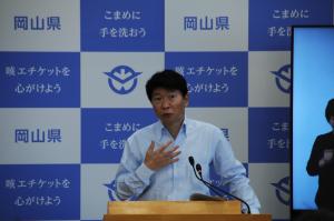 押印の義務化をできるだけ外していこうということと、デジタル化を進めていこう、別物なんですが、非常にリンクをしていまして、今行政手続きのデジタル化を進めるにあたってネックになっているのが、押印ですとか、もしくは領収書を添付しろみたいなそういうことであります。押印を廃止することによって、デジタル化を進めていこうということにしております。デジタル化そのものについては、結構県だけでやれることもあるんですけれども、できないことも多々ございます。その人がちゃんと本人なのか、本人確認ということであったり、そういうシステムを、まだ我々が求めているレベルで国の方で完了できておりません。それについて自分たちで作ってしまうというのも一つの手ではあるんですけれども、そういうことを各県でやってしまうと、また県ごとにバラバラなシステムが乱立をしてしまって、かえって出来上がりの図がよくないということですので、我々とすれば、そういう何か岡山県だけ先に先に進みすぎて仕上がりは悪いということよりも、国が今もいろいろしてくださっている最中ですので、それを後押ししながら、きちんとそれに乗っかっていくというのが我々の基本方針なんですけれども、まず我々自身、国がもうデジタル化しますよと言っていることが21手続ありますけれども、その率を上げていくということですとか、我々自身でできそうなものがあれば、これから見つけていくということになります。すいません。具体的にこれをこれをということではないんですけれども、とにかく国の動きを待っていると、待っているだけだと、今回コロナで、非常にこういうときこそオンラインでやりたいのになかなかオンラインがうまくいかなかったということがありました。我々自身、国が動かないと動けない部分も多々あるわけなんですけれども、ただ国が準備ができてから、はい進めますというのはなかなか待っていられないということで、まず我々でできるところから始めていこうという、今回そういう動きであります。