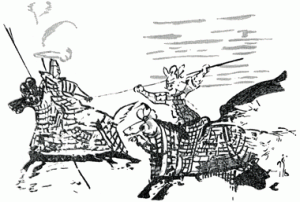 高句麗古墳壁画に描かれた騎兵(末永雅雄・伊東信雄『挂甲(けいこう)の系譜』1979雄山閣より引用)