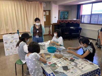 8月3日(木曜日)、岡山市立東公民館で行われた「夏休みフリー塾2023」でセンター職員が勾玉づくり体験の講師を務めました。当日は地元の小学生4~6年生21人が参加し、センター職員による勾玉の歴史や作り方の解説の後、実際に石を削って製作を行いました。