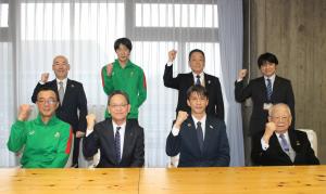 原秀治監督と山本将平選手は「連勝し、後半戦に向けて弾みをつけたい」「コロナ禍でも試合ができることに感謝し、皆さんに勇気と感動を届けられるよう頑張りたい」と意気込みを力強く語りました。横田副知事も「コロナの影響で多くの制約があり、苦しい状況だと思うが、思いを凝縮して試合に臨んでほしい」と激励しました。